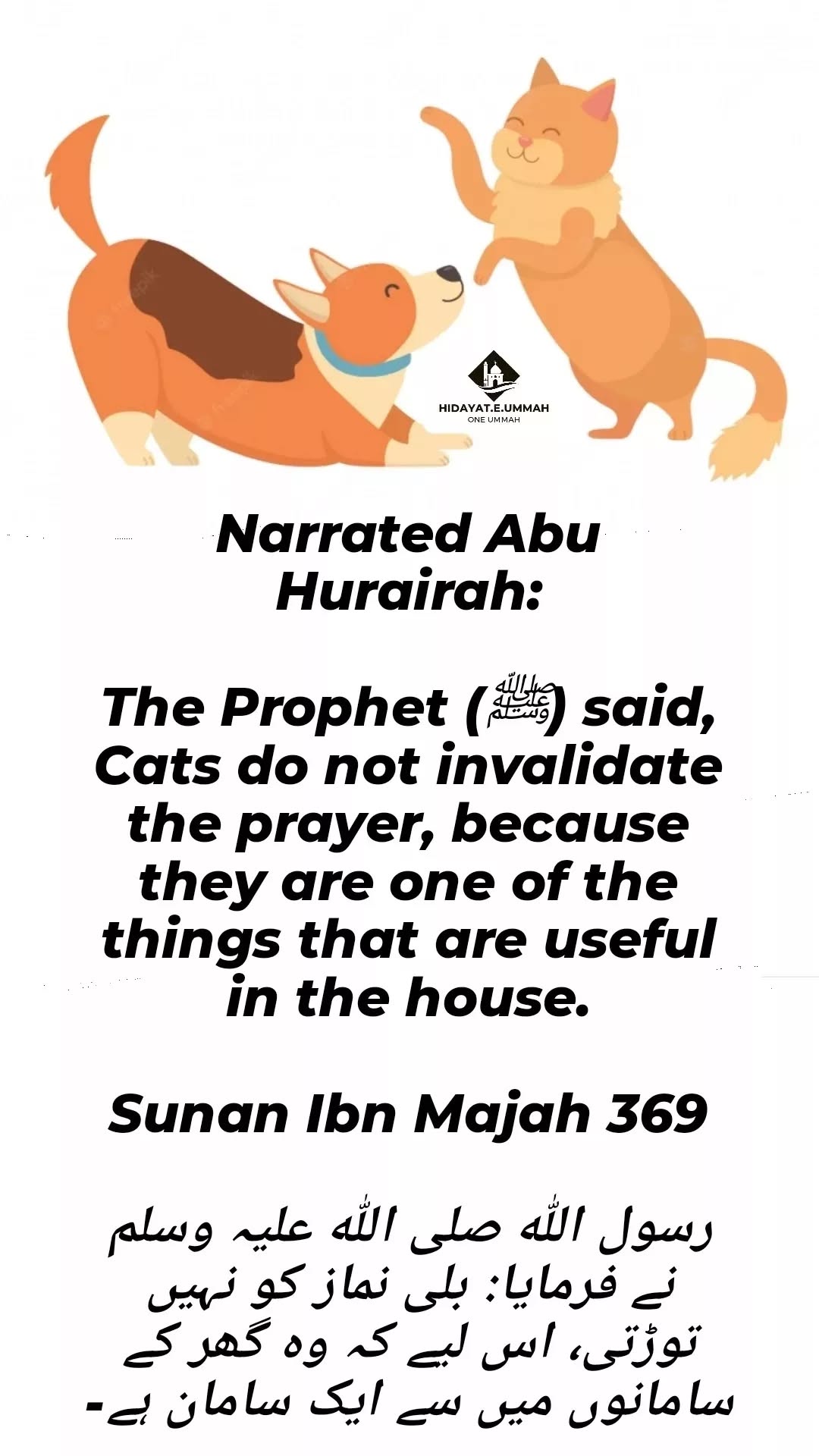 1. In this hadith, the Prophet (Peace Be Upon Him) clarifies that cats do not invalidate the prayer.
