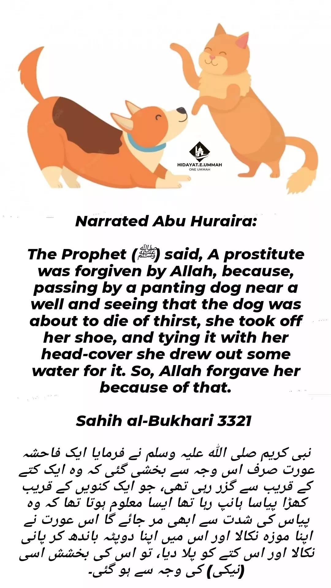 1. This hadith tells the story of a prostitute who was forgiven by Allah for her past sins.