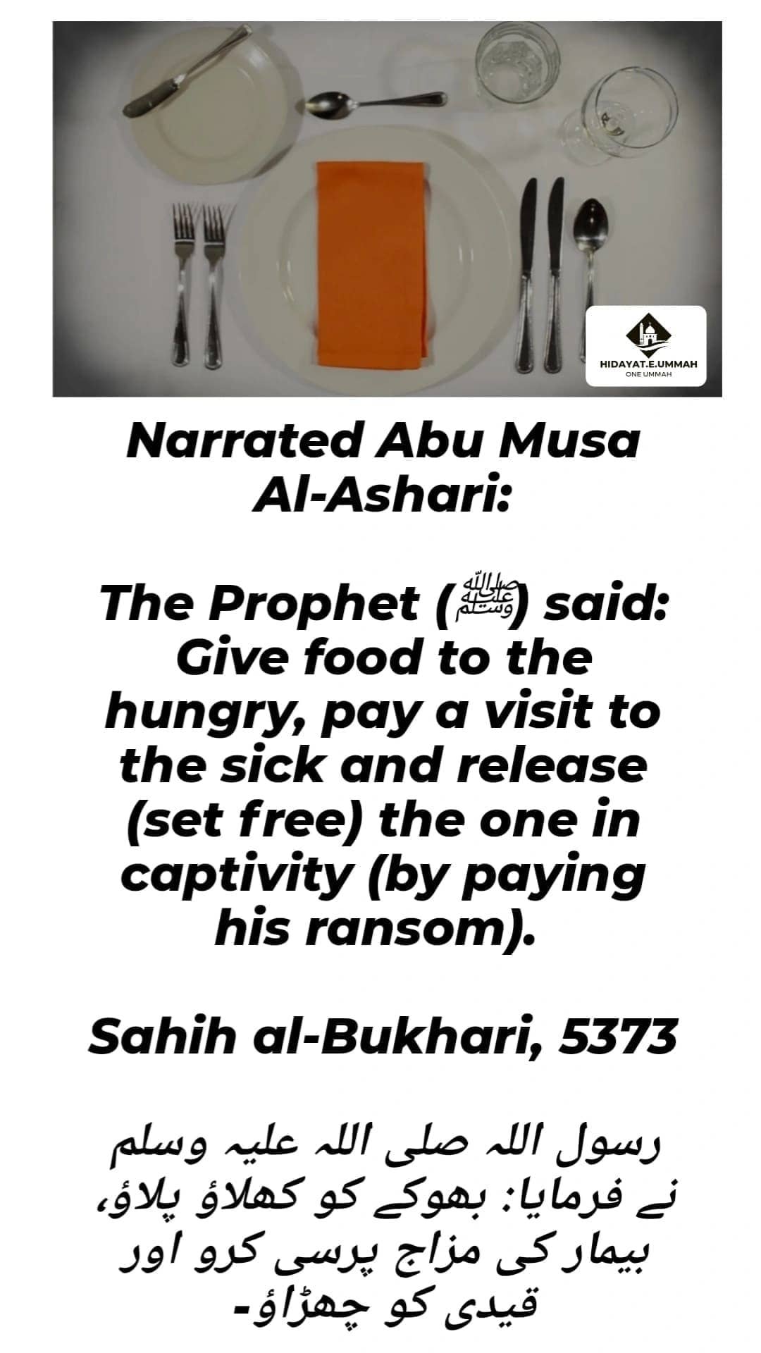 1. This hadith, narrated by Abu Musa Al-Ashari, highlights the compassionate teachings of the Prophet Muhammad (peace be upon him) regarding helping others.