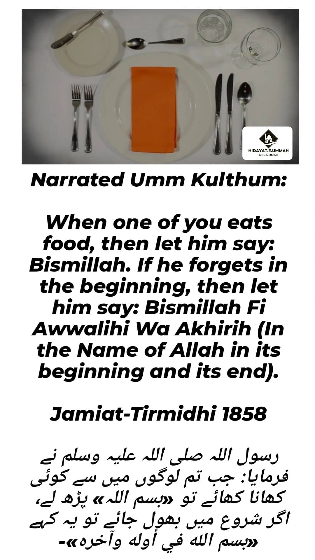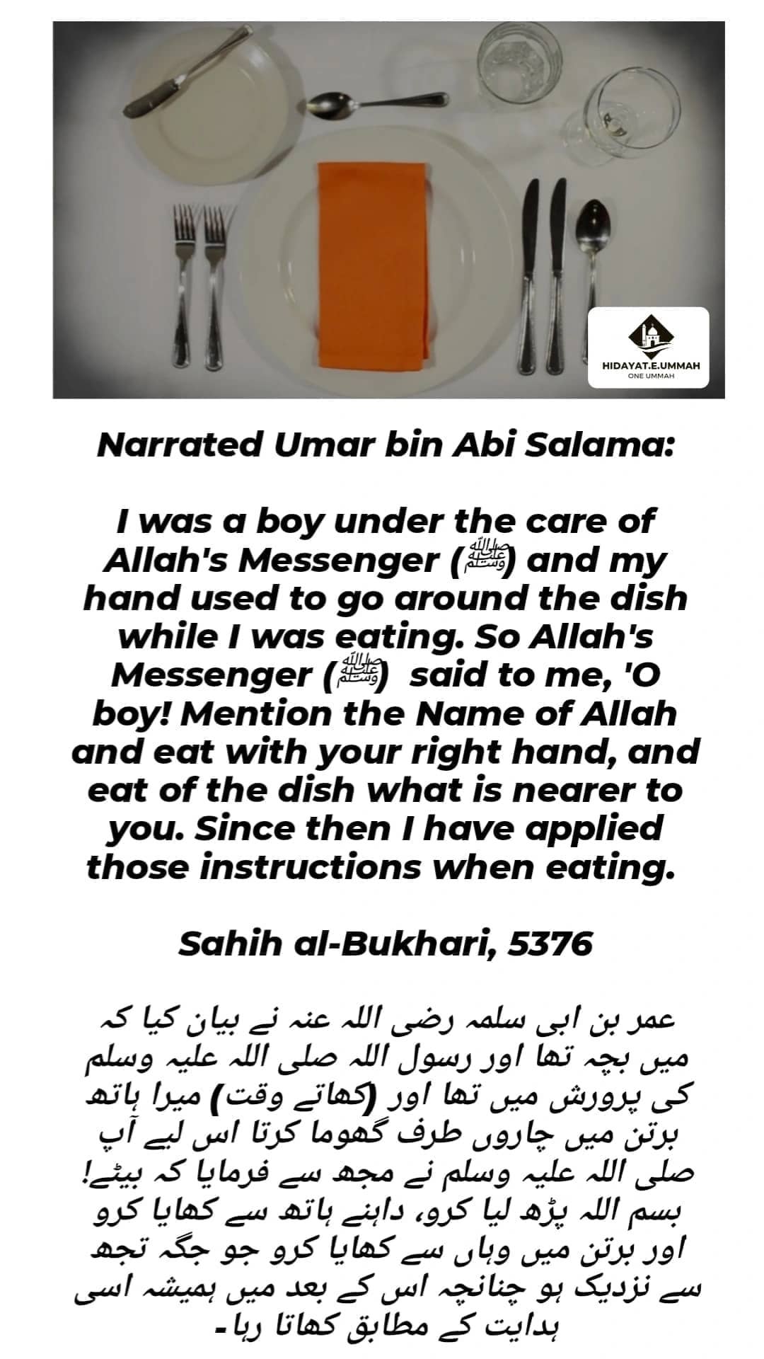 4. He also emphasized the importance of mentioning Allah's name before eating.