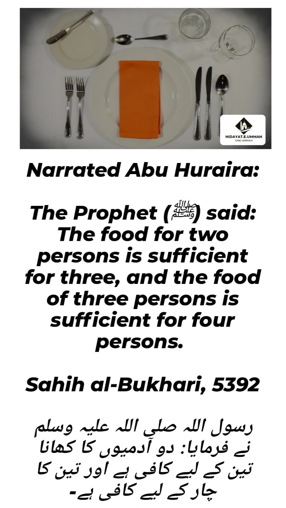 1. This hadith, narrated by Abu Huraira, emphasizes the principle of sharing and generosity in Islam.