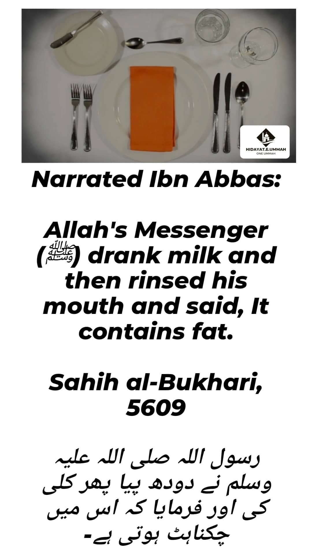 1. The Prophet Muhammad (peace be upon him) drank milk and then rinsed his mouth after drinking it.