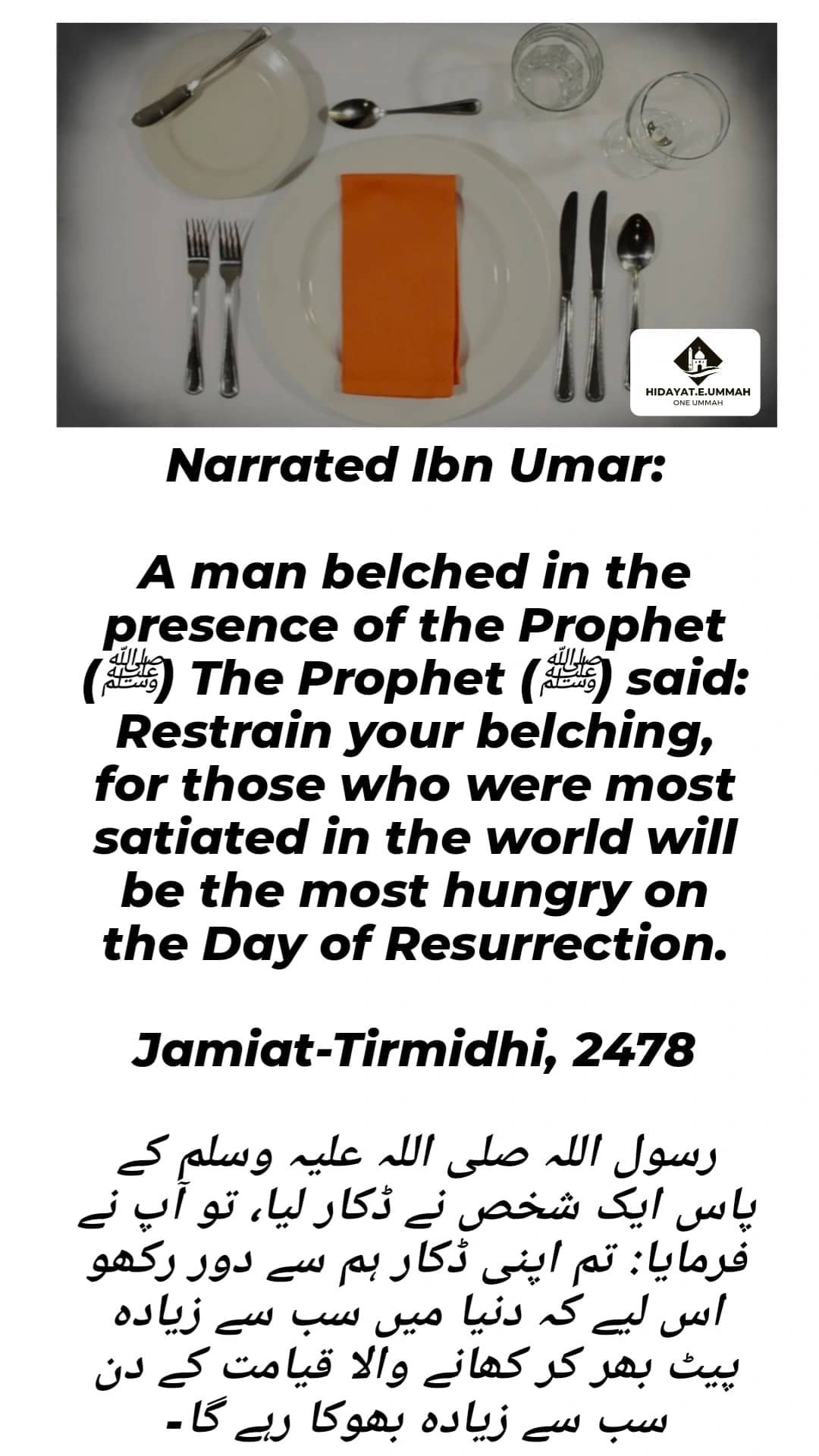 2. When a man belched in his presence, the Prophet (peace be upon him) advised him to restrain his belching, indicating that excessive eating or indulgence is not encouraged.