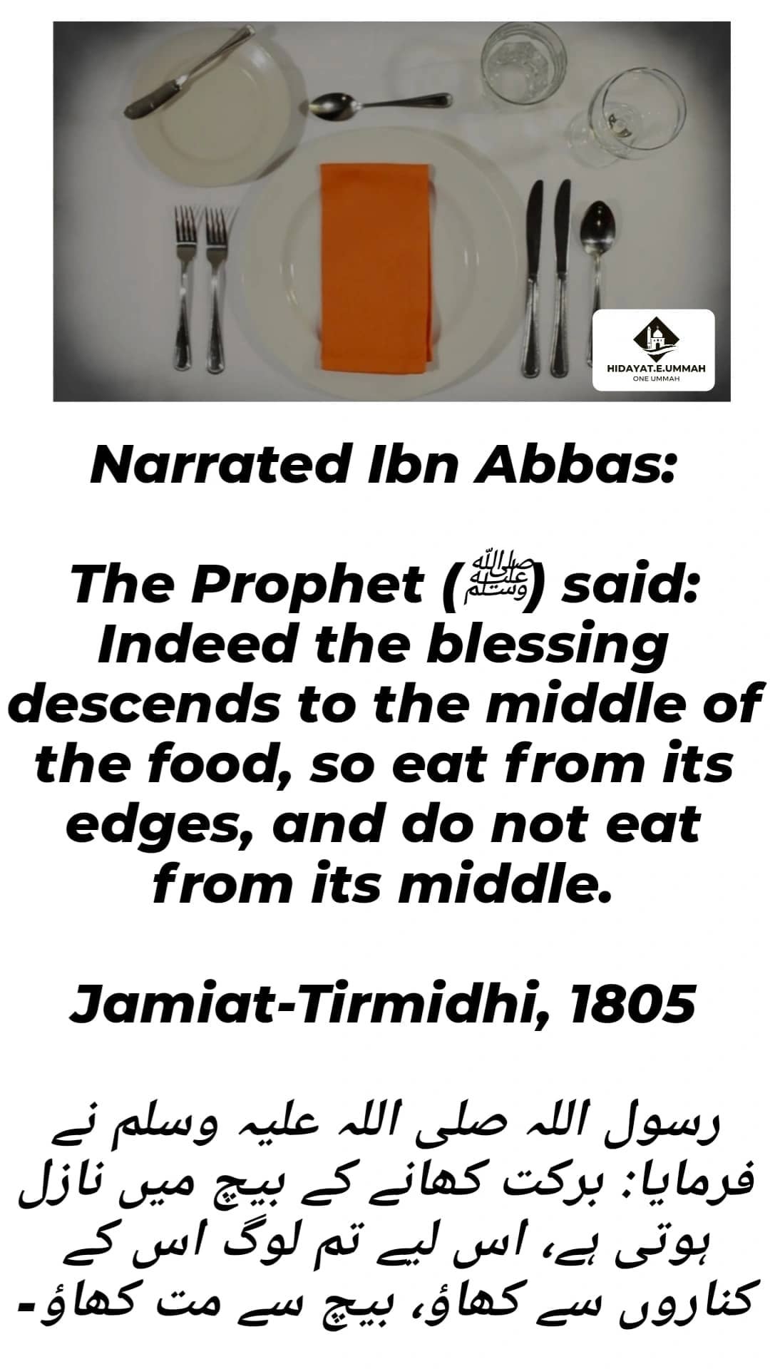 1. This hadith advises on eating etiquette and the respectful sharing of food.