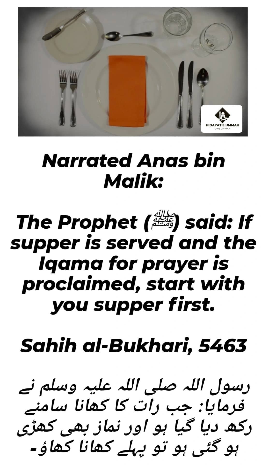 2. The Prophet (peace be upon him) instructed that if supper is served at the same time as the call to prayer (Iqama), one should begin by eating supper first.