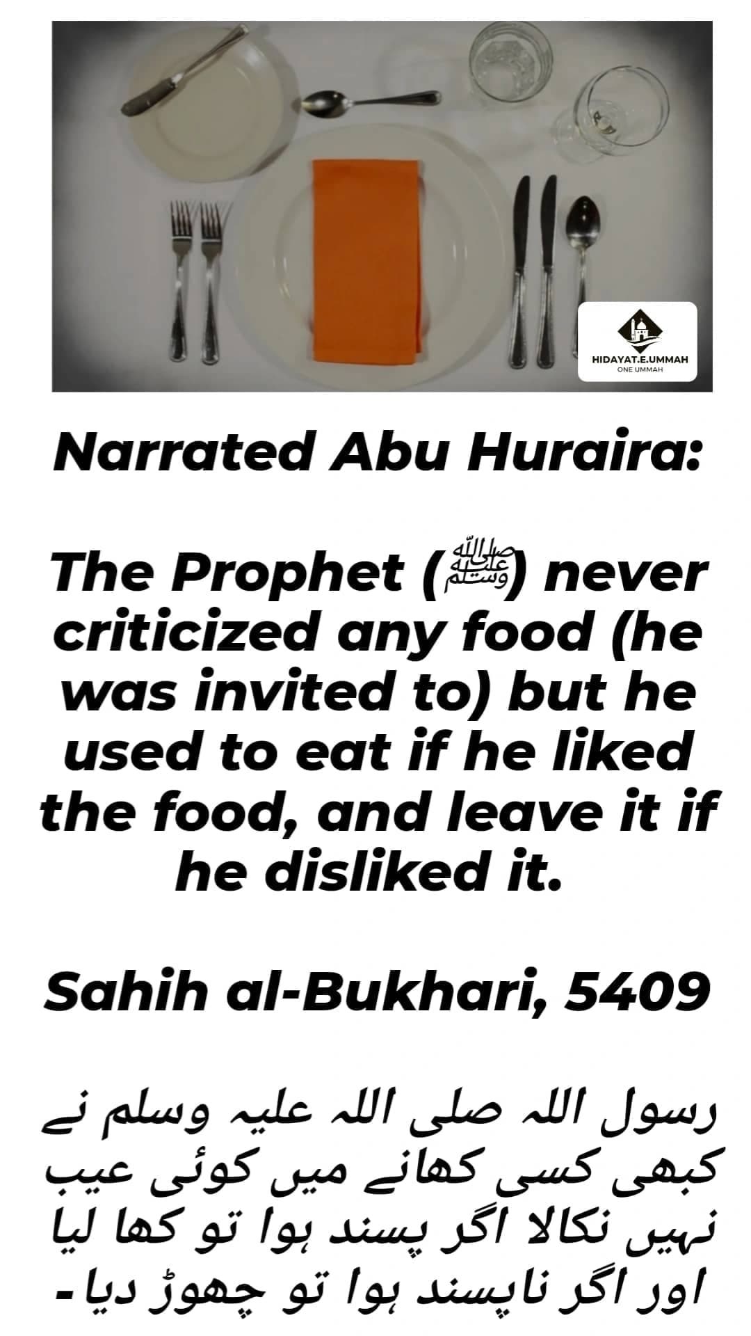 2. The Prophet never criticized any food, even when he was invited to eat, showing his respect for the efforts of others.