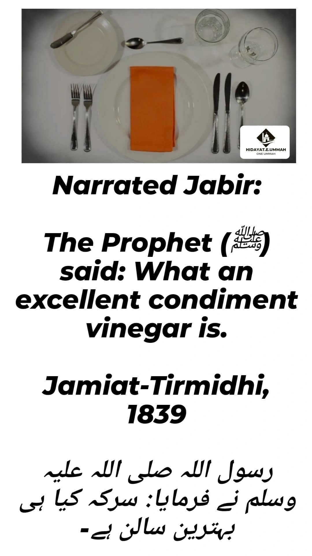 1. This hadith is narrated by Jabir, where the Prophet Muhammad (peace be upon him) praises vinegar as an excellent condiment.