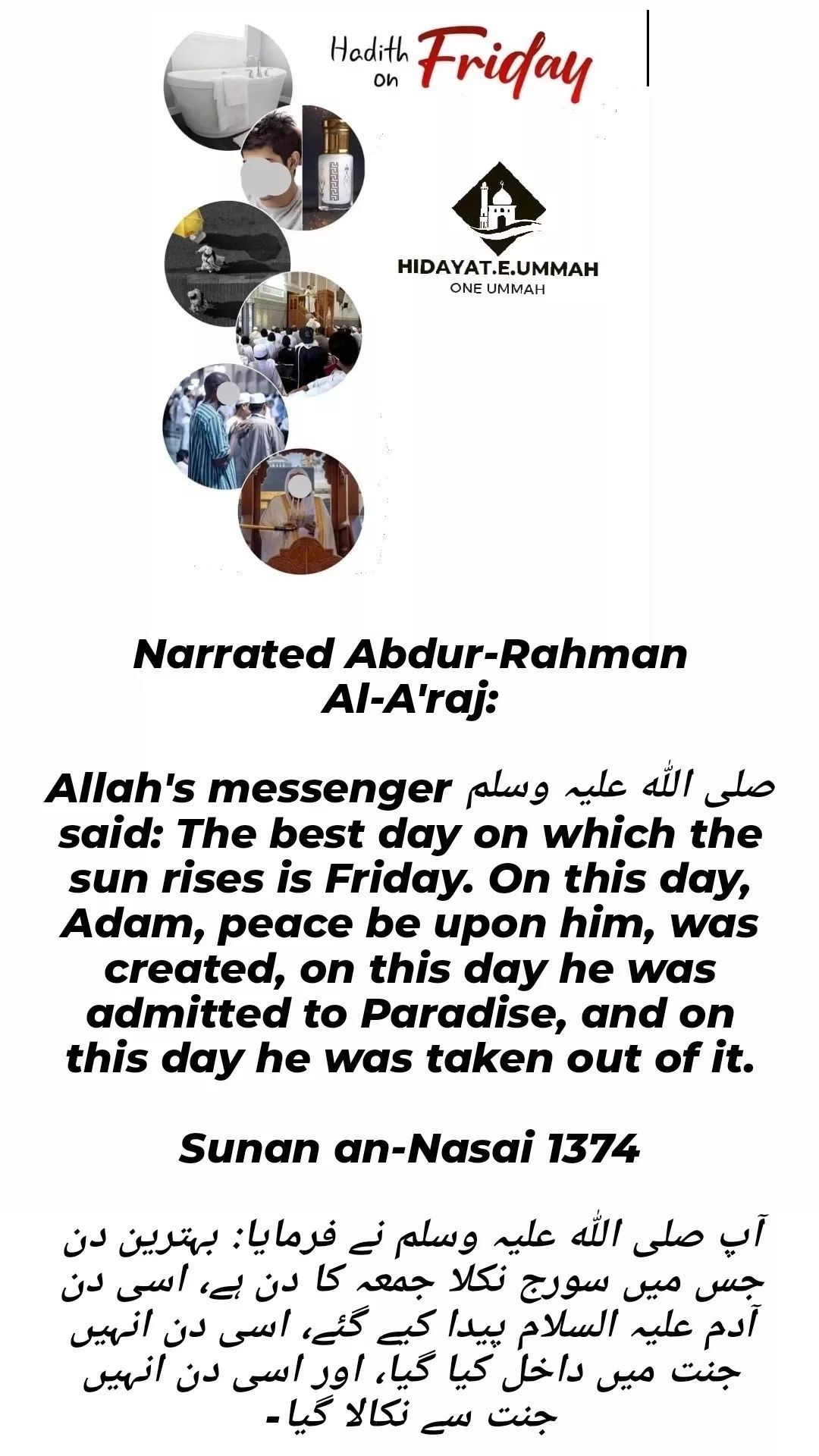 6. This hadith emphasizes the spiritual significance of Friday and encourages Muslims to honor and make the most of this special day through worship and good deeds.