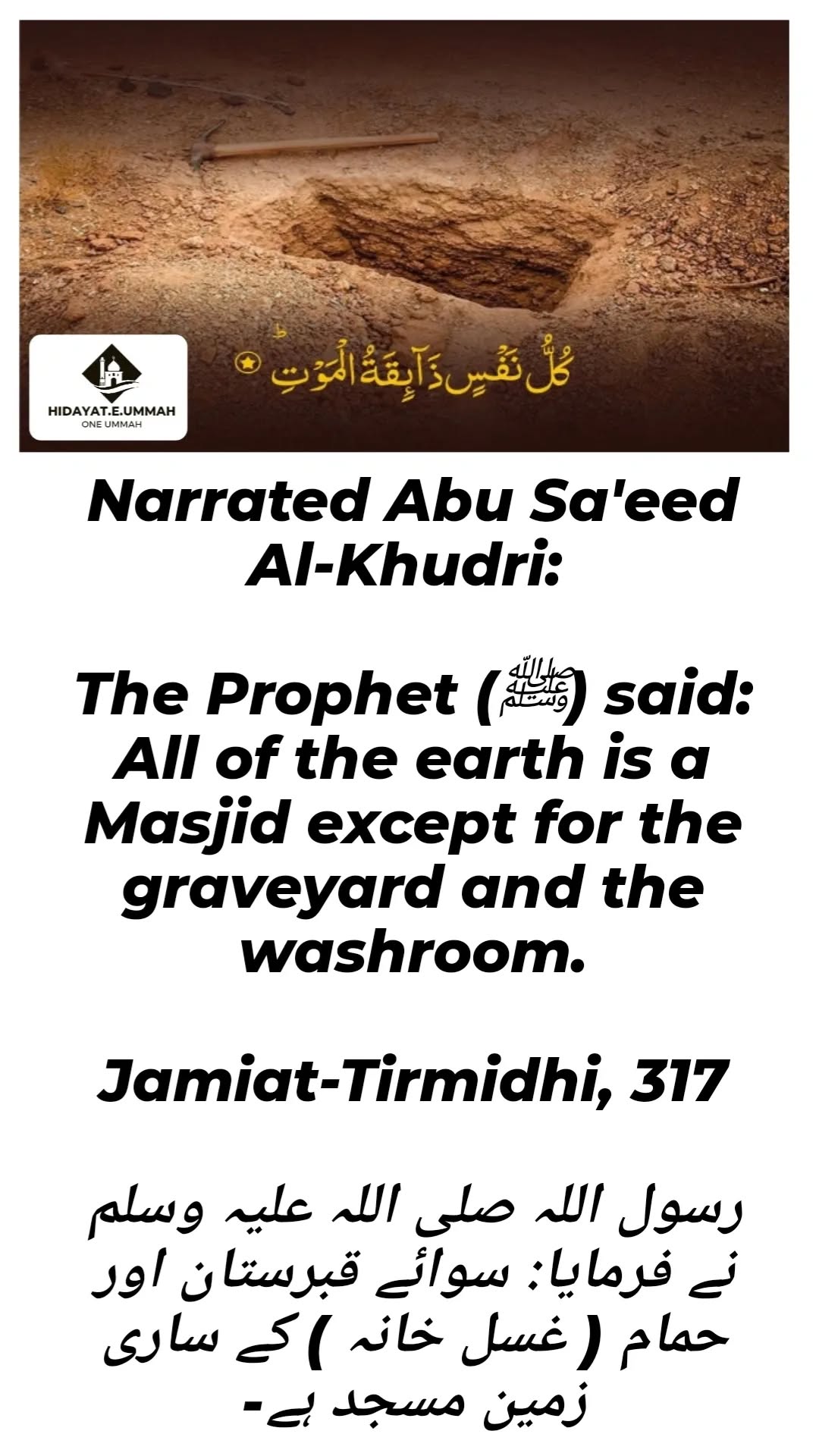 3. However, the Prophet (peace be upon him) makes an exception for two places: the graveyard and the washroom.