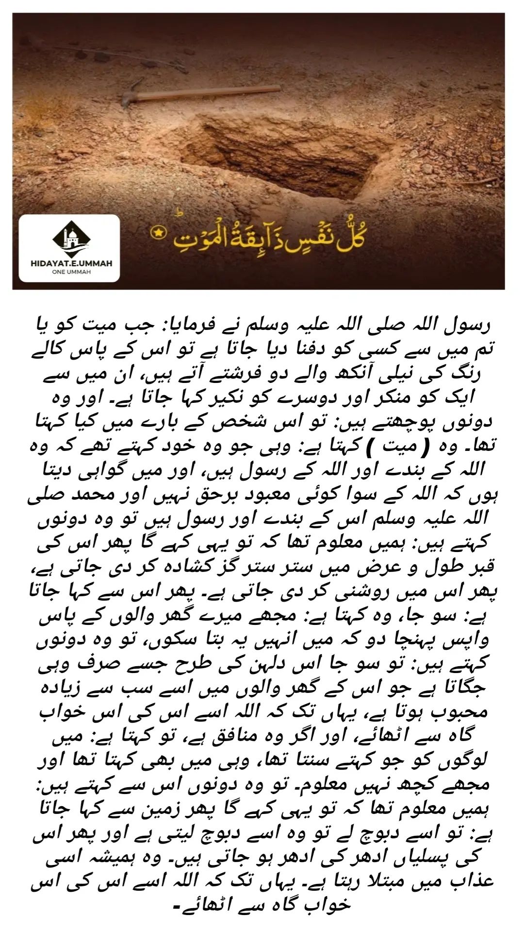 2. The Prophet (peace be upon him) mentioned that after a person is buried, they will undergo a trial in their graves.