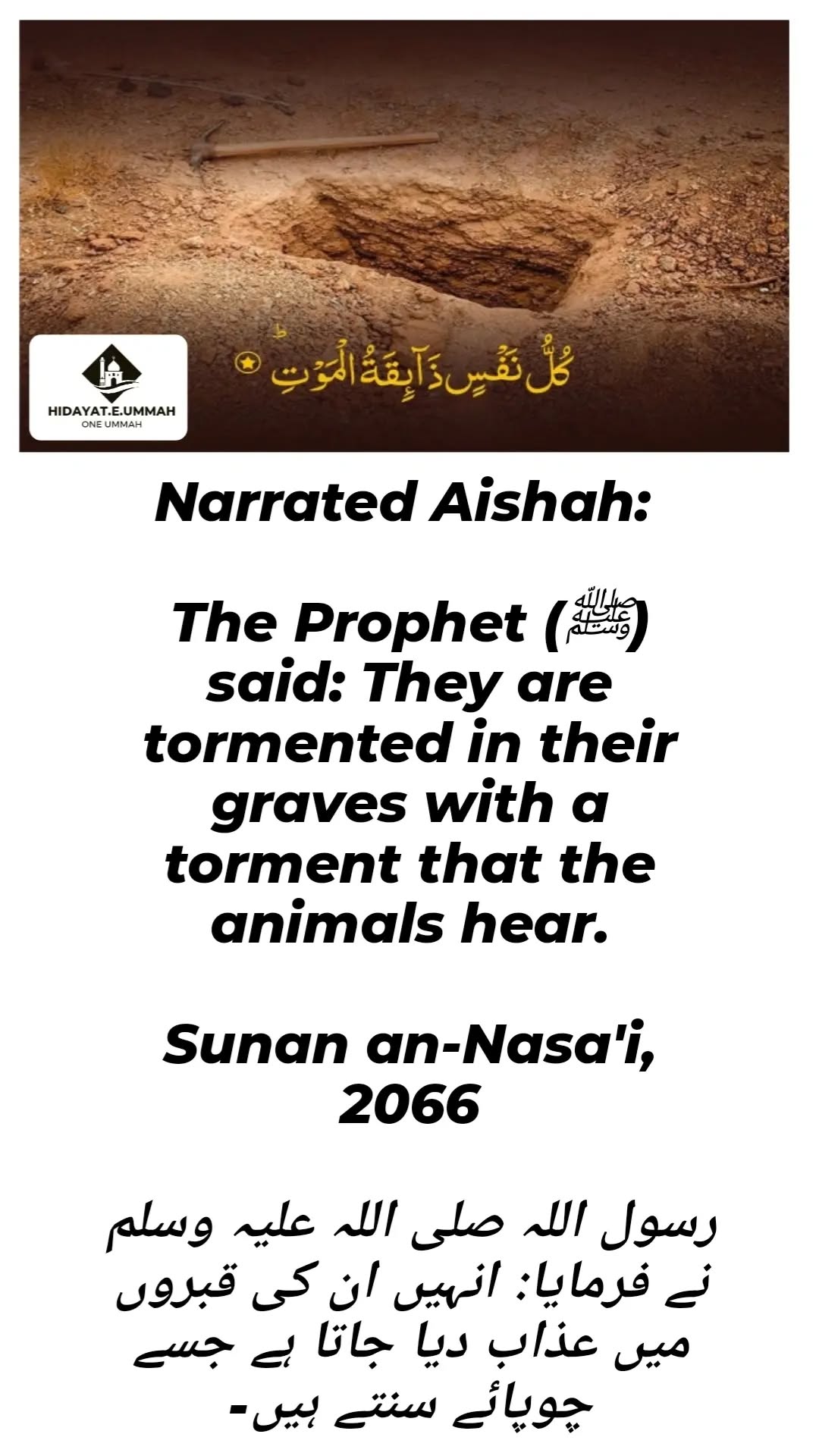 1. In this hadith, Aisha (may Allah be pleased with her) narrates that the Prophet (peace be upon him) said that some people will be tormented in their graves.
