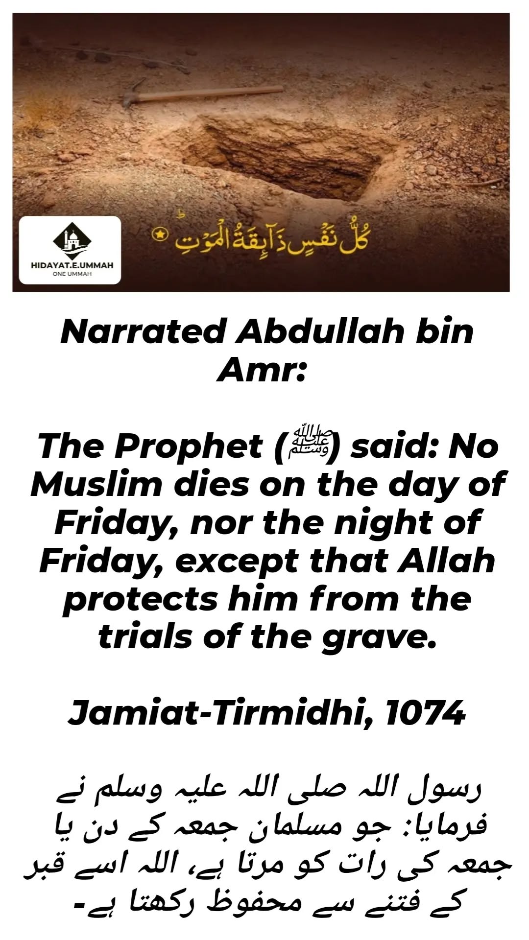 1. In this hadith, the Prophet (peace be upon him) informs that a Muslim who dies on the day or night of Friday will be protected by Allah from the trials of the grave.