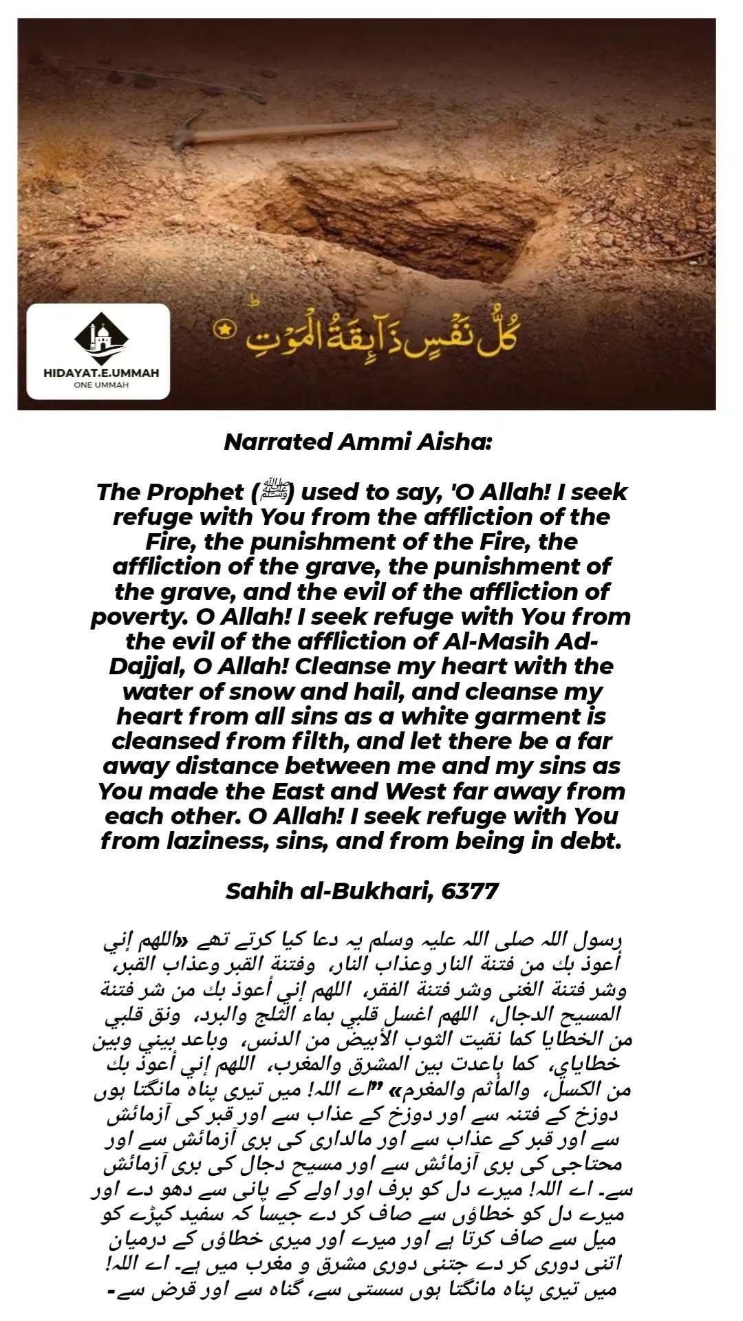 5. This hadith is a reminder of the significance of asking Allah for protection from life's difficulties and for spiritual and physical purification.