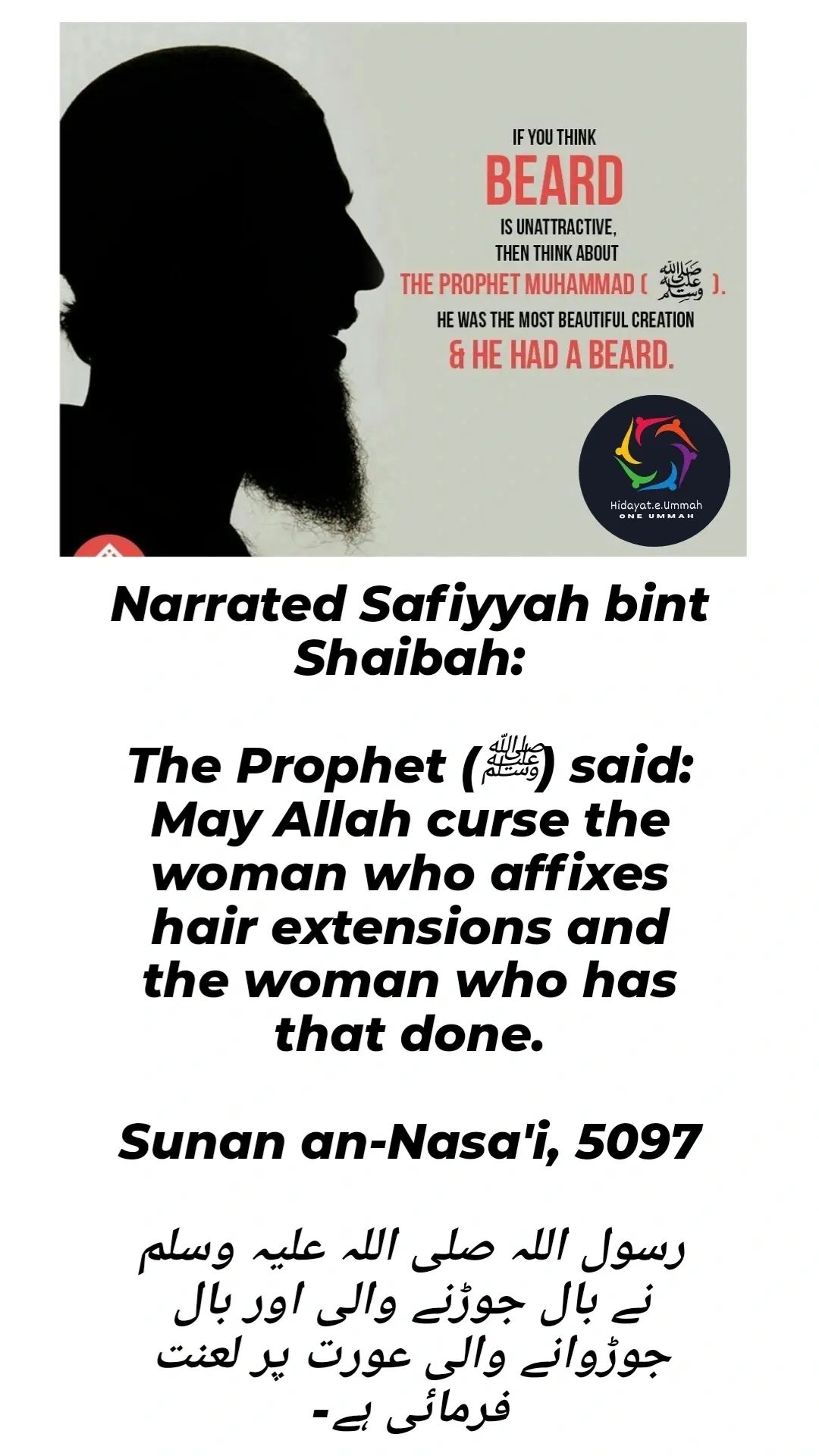 This hadith, narrated by Safiyyah bint Shaibah, mentions the Prophet Muhammad (peace be upon him) cursing women who use hair extensions and those who have them applied. The Prophet disapproved of such practices as they are seen as altering the natural appearance in a way that is not in line with modesty and authenticity.