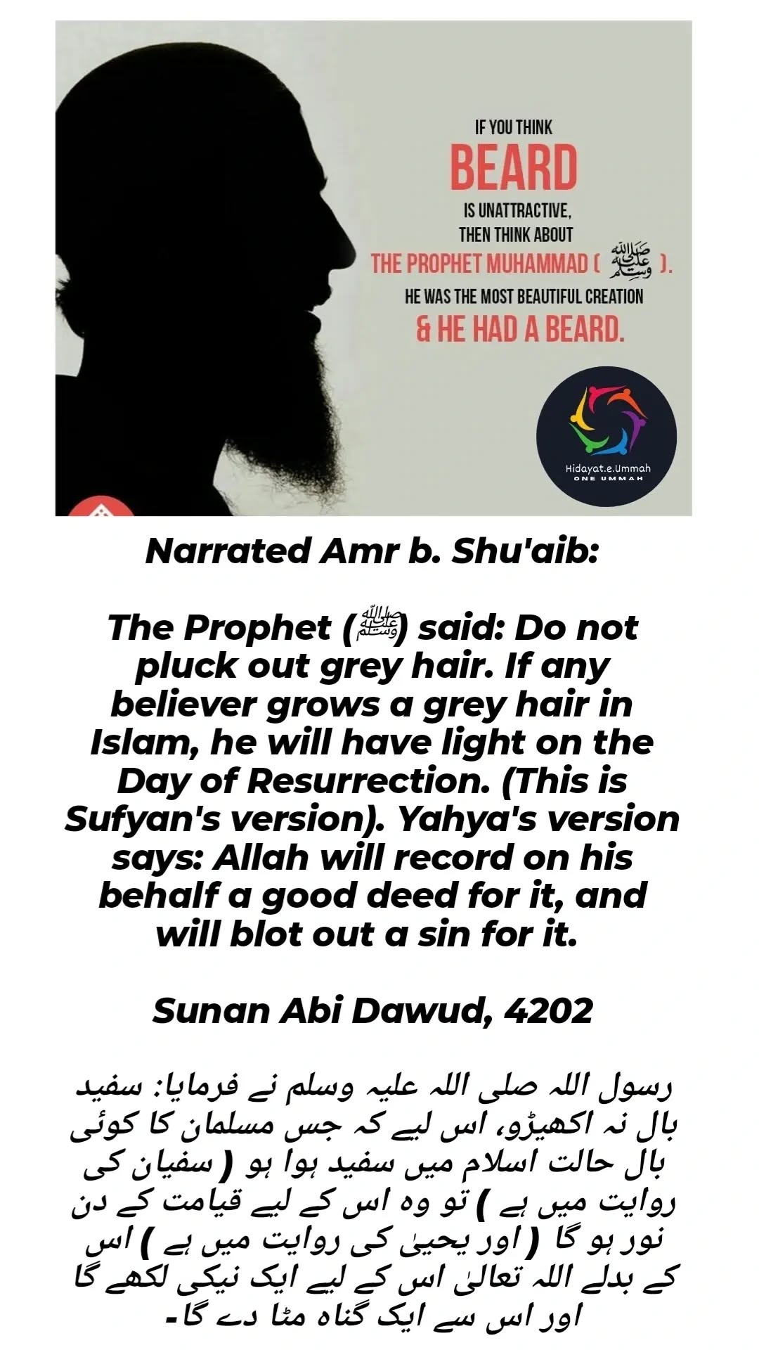 - The Prophet (peace be upon him) instructed his followers to do the opposite of what the pagans or non-believers do in certain practices. In this case, the Prophet emphasized the importance of growing beards and trimming the moustaches, which was a way to distinguish Muslims from the pagans who typically shaved their beards and let their moustaches grow long.