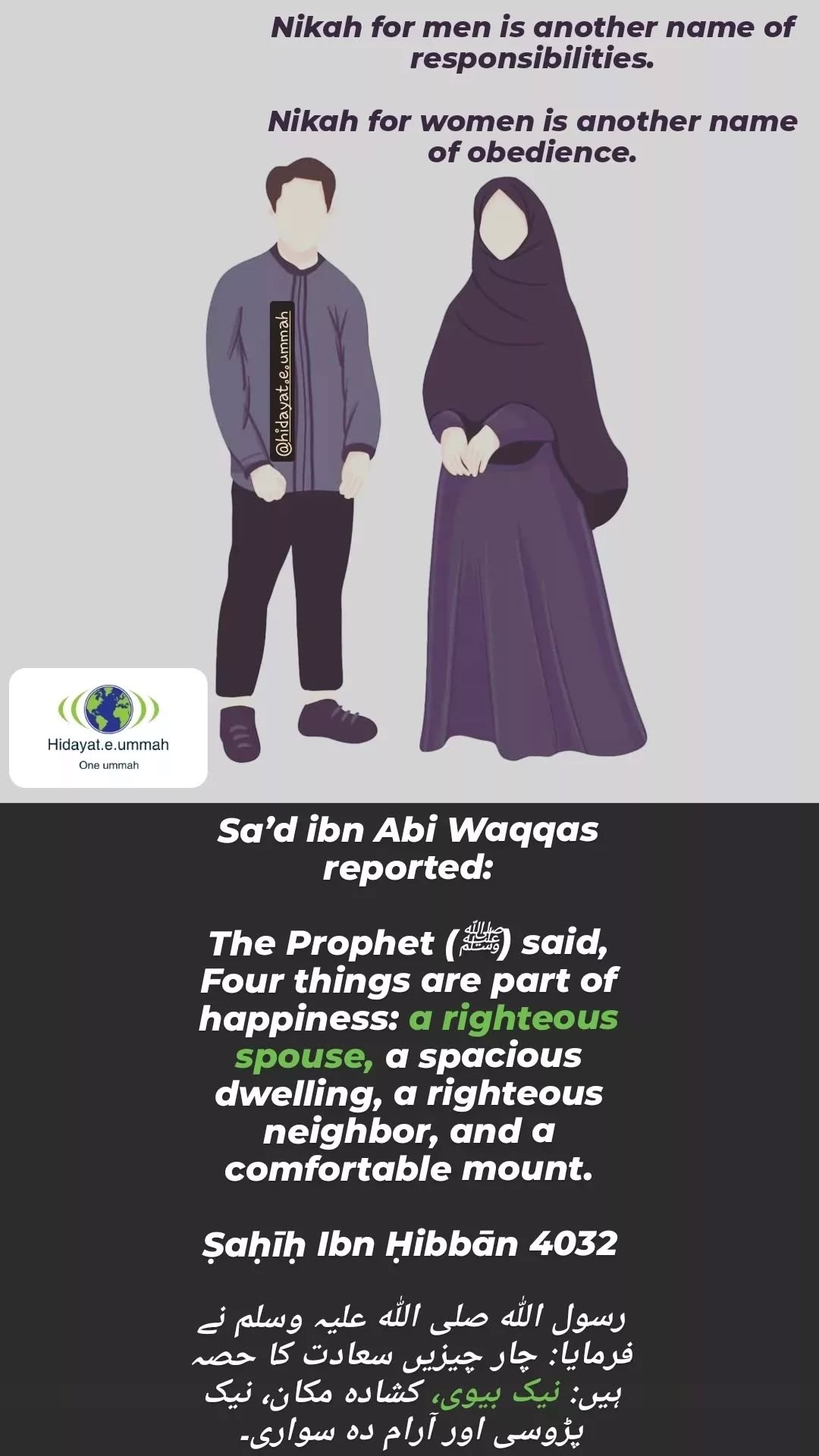 - Marriage provides a foundation for emotional, spiritual, and societal stability. It encourages mutual support between spouses to live according to Islamic principles and helps avoid sins related to desires and personal conduct.